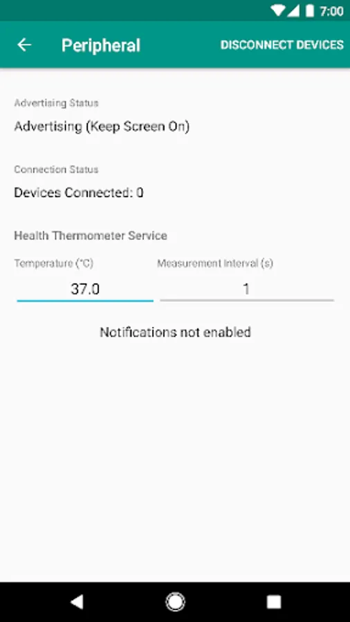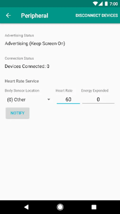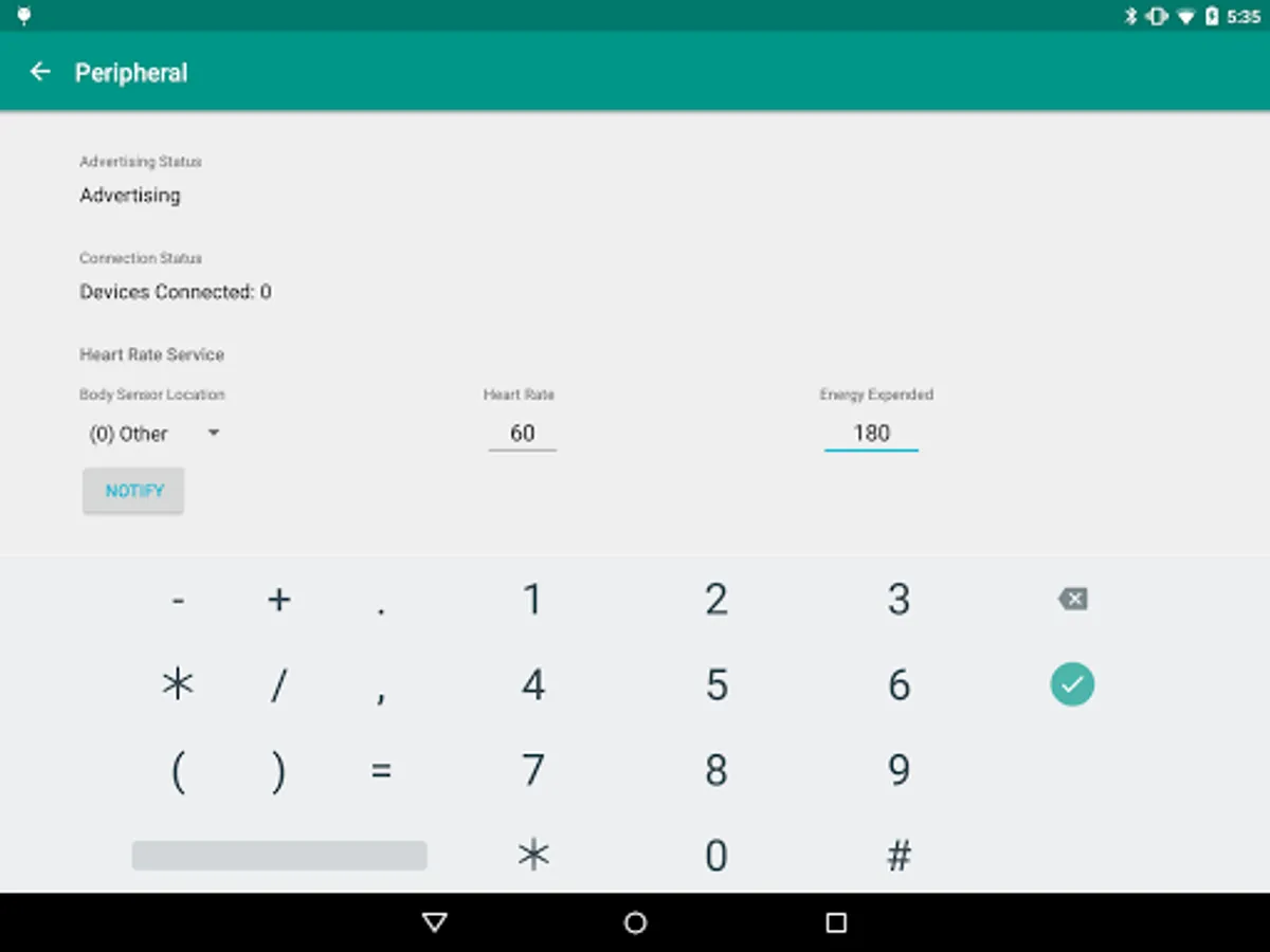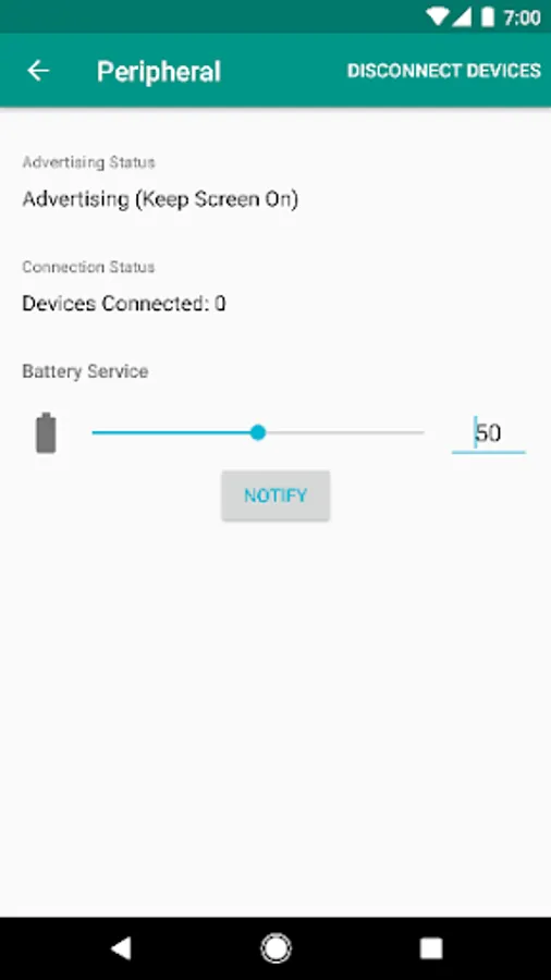 Developers can use the app to simulate a BLE Peripheral with one of three services: