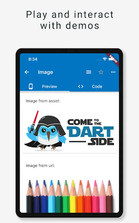 Click on list items of home page to see demos of different Flutter components, the source code is just besides the previews ! ;)