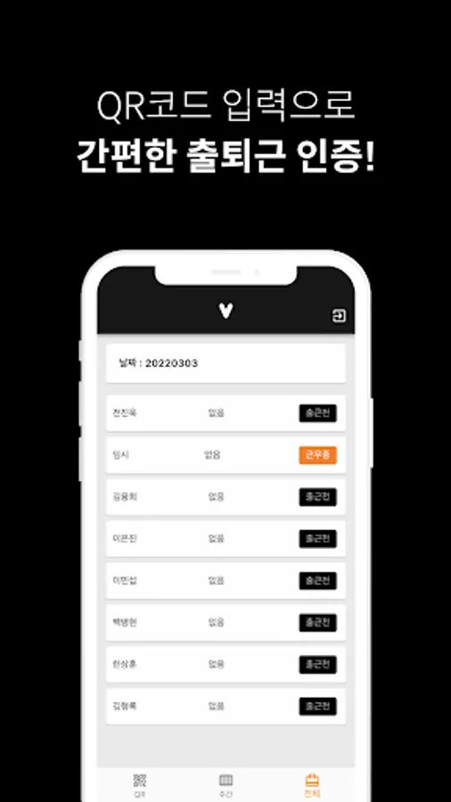 QR코드 입력으로 간편한 출퇴근 인증!
