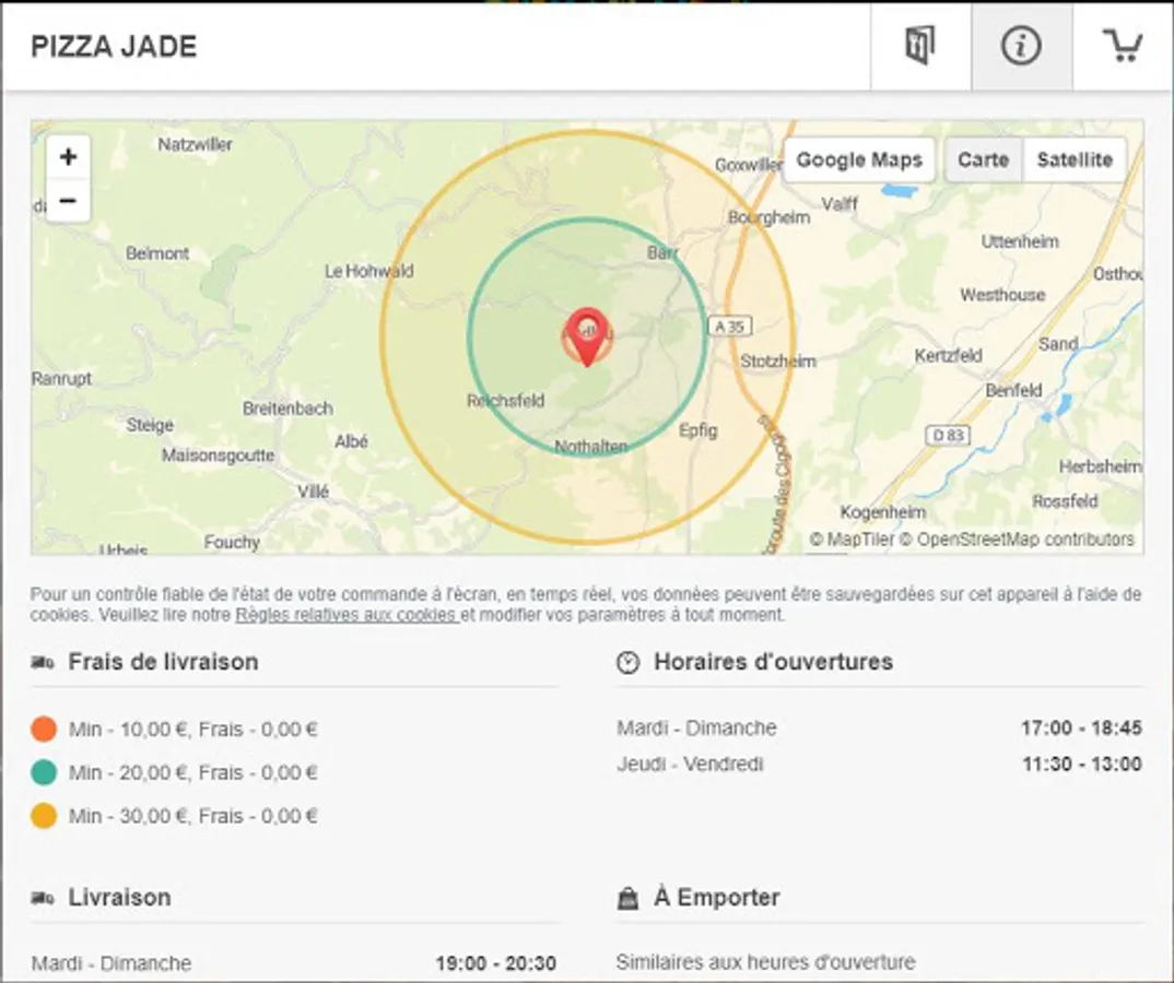 Order online our delicious pizzas, tarts flambées to take away and delivery in Andlau.