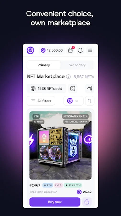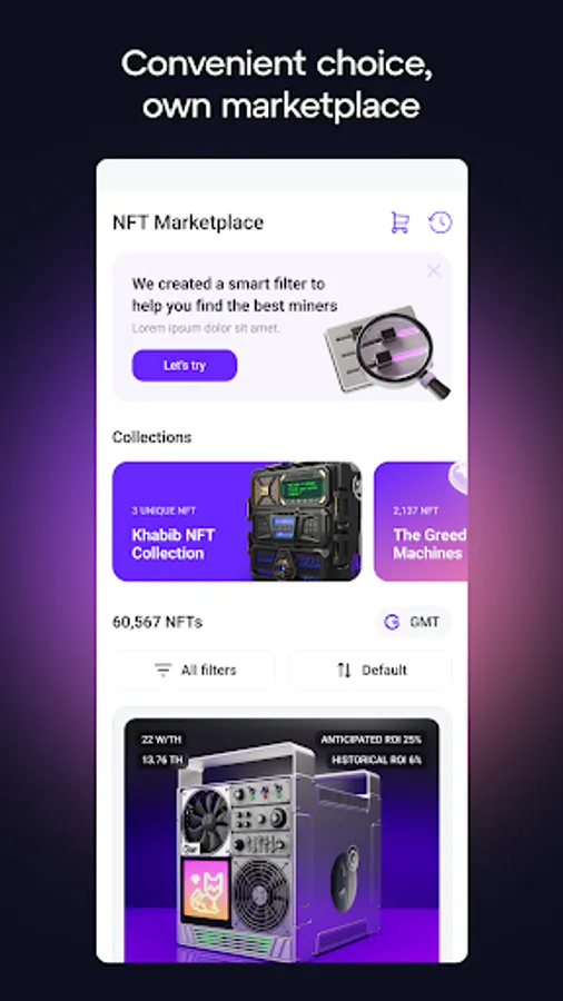 A wide range of our digital miners provides access to both beginners who just want to try, and professionals who want to invest in products with an ROI of up to 50%.
