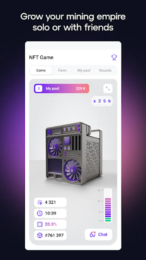 With our NFTs, you can earn passively simply through holding. For those who want even more BTC, we have developed an NFT game. Team up with friends in pools and fight for bitcoin blocks.