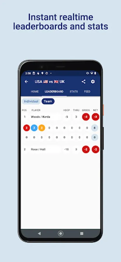 Want to know what score you need on the 18th to beat your friend, or maybe even win the championship? Now you can. Players have access to the full leaderboard which is updated in realtime, just like a professional tournament.