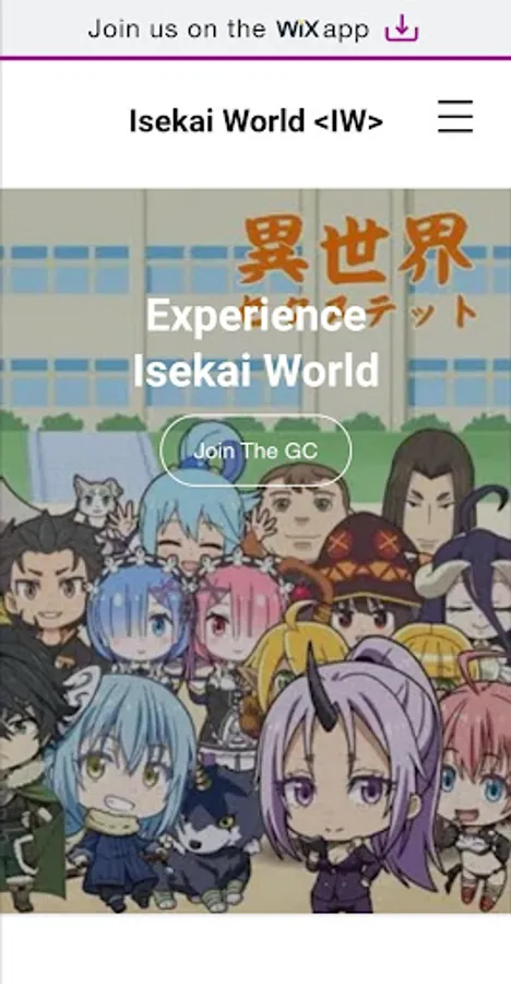 It is an app that was made for the gc messenger Facebook named Isekai world app was made by Wix and Go Native and Android App Editor you can review here your facebook name so we can add you to the groupchat. We might add friend you if we can't add you on the group chat because of Facebook issues. Have a good day. All credits goes to there respective owners anime company and the logo for the app. well we do hope this is Fair use.