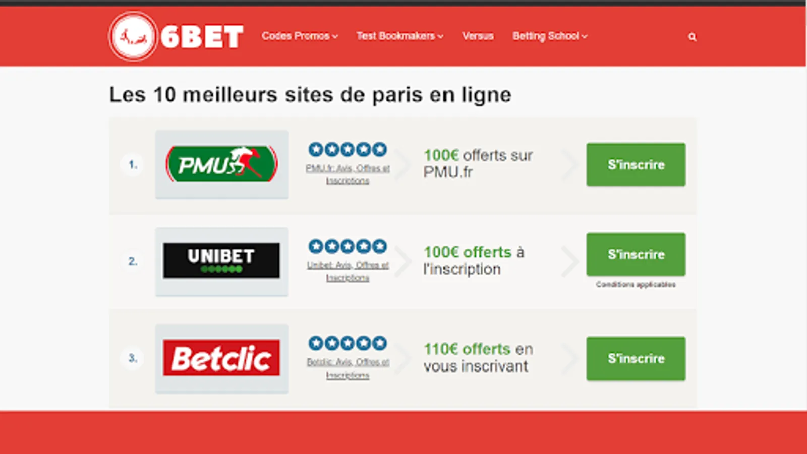 Complete and transparent review of legal sports betting sites in France. Review of offers, welcome bonus, mobile applications, ... The French bookmakers includes are: PMU, Winamax, Betclic, Unibet, Vbet, Zebet
