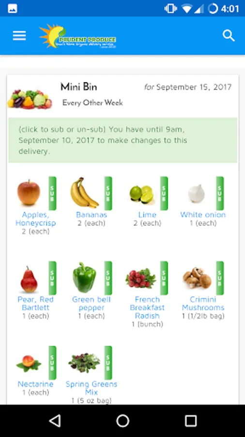 Prudent Produce strives to be flexible to accommodate your busy life and your preferences. Need to skip a week or two? Just let us know! Grow your own tomatoes, so don't want them in your bin? We can make that happen! Want to add milk, bread, and eggs every week? Done!