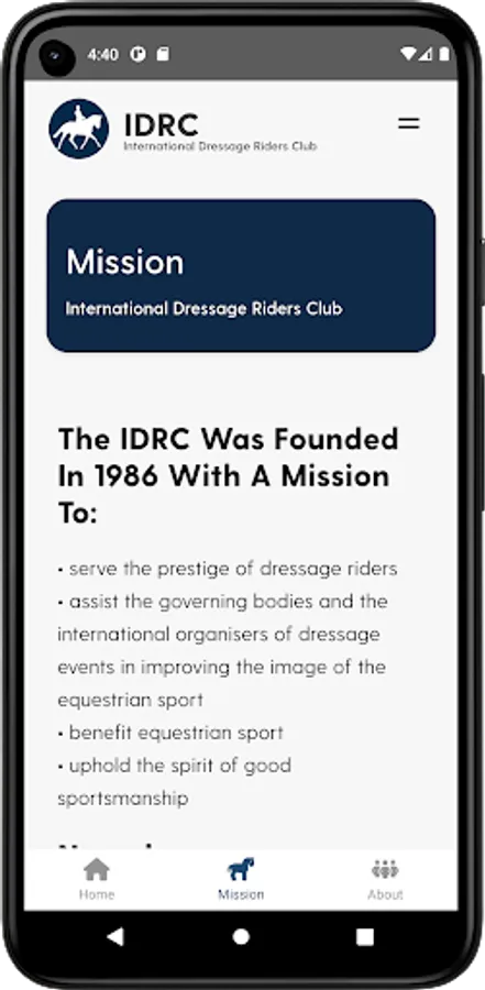 The IDRC app gives you the latest news about the dressage world and offers you an insight look.
