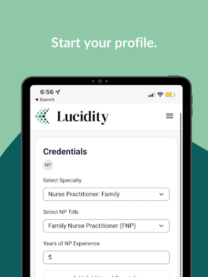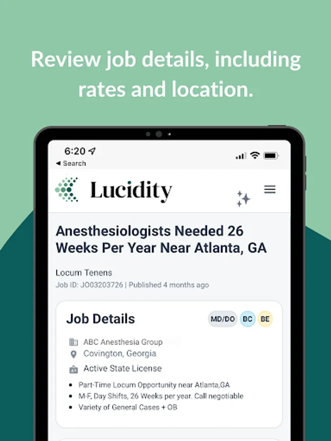 Lucidity is an app by Health Carousel Locum Tenens that connects healthcare professionals to facilities for short and long-term staffing needs. Designed for physicians and advanced practitioners, Lucidity uses an intelligent matching algorithm that learns a provider’s preferences and matches them with open roles at facilities. This unique matching process solves the pain points of searching through dozens of open roles, and going back-and-forth with a recruiter.