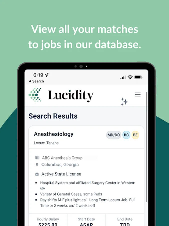 Lucidity gives physicians complete control of their career path, empowering them to work within their availability, salary, location, and specialty preferences.