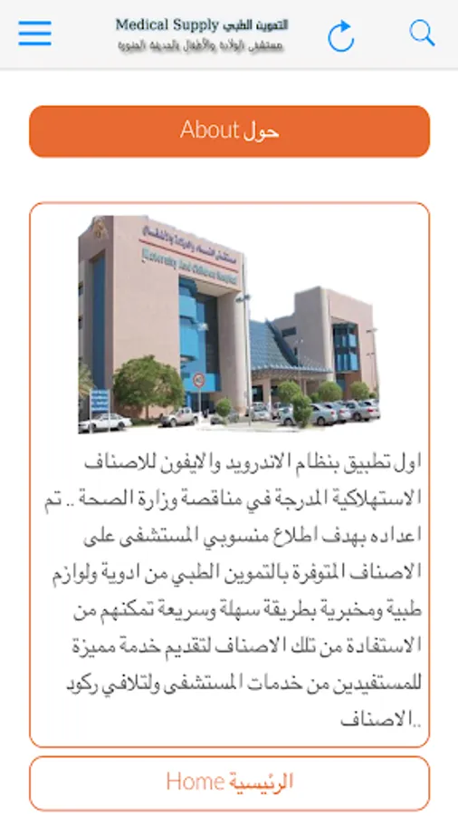 The first application works on smart devices for consumer varieties listed in the tender and the Ministry of Health .. been prepared in order to inform employees of the hospital on the varieties available medical rations of medicines, medical supplies and laboratory in an easy way and quick to enable them to take advantage of those items to provide a unique service to the beneficiaries of the hospital services and to avoid recession varieties .