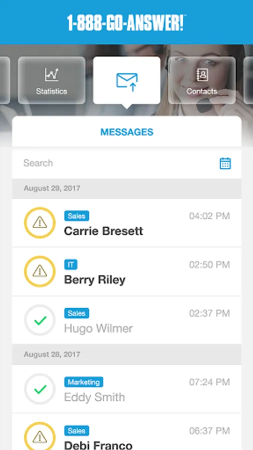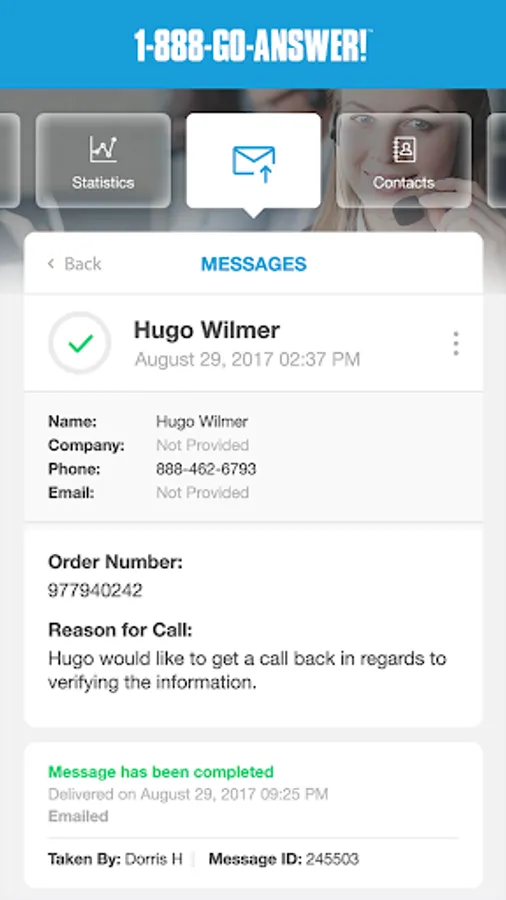 - View your company’s detailed messages (caller name, date/time, contact info, reason for call, and agent who answered)