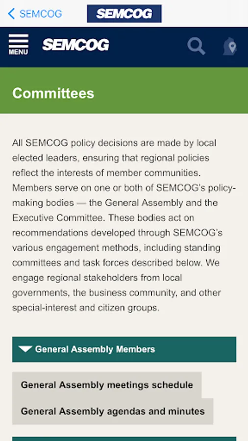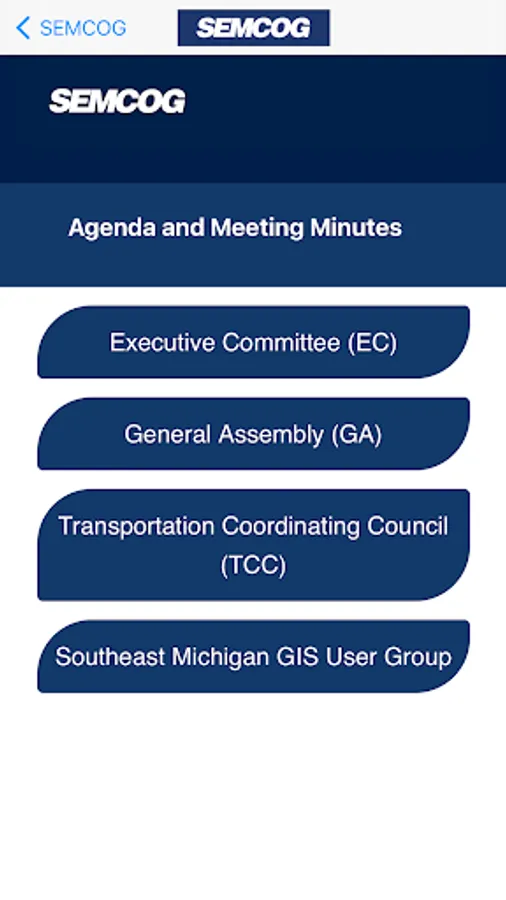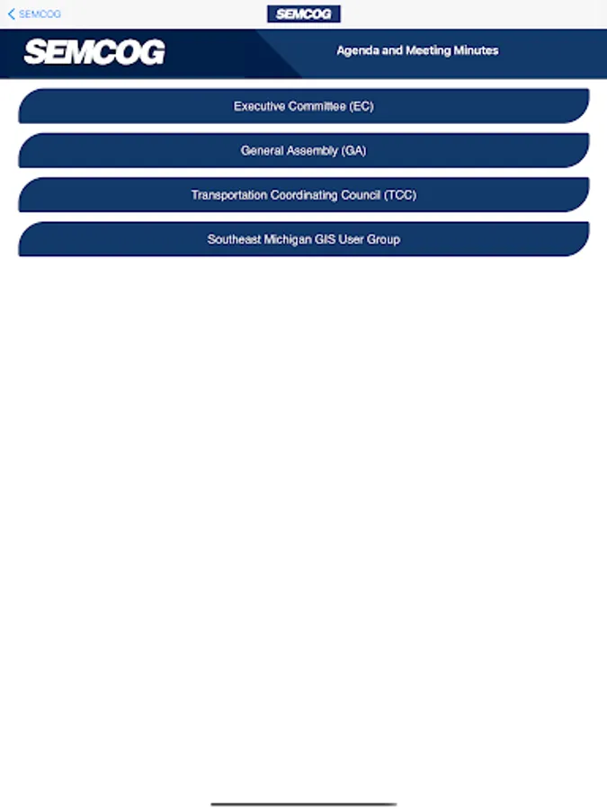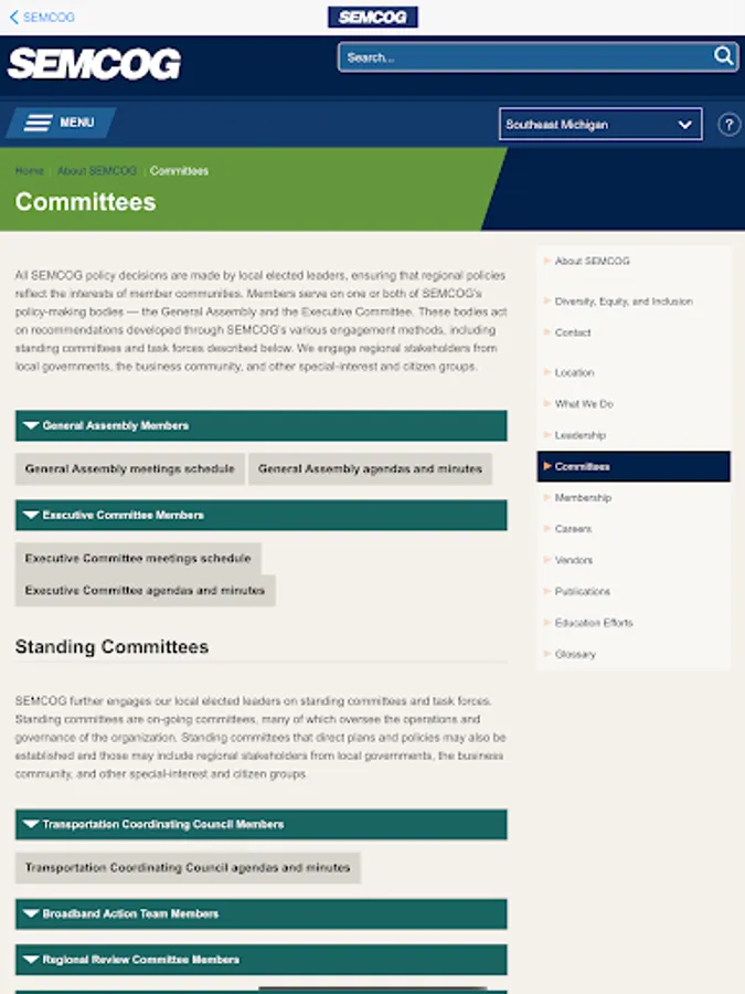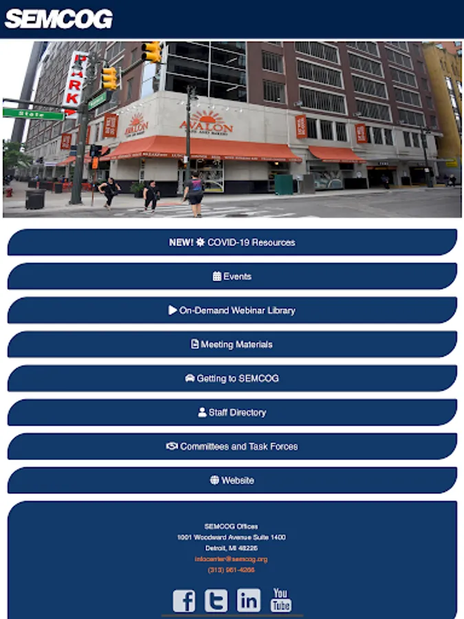 For members of SEMCOG, this app is your one-stop-shop for quick information. Take the shortest route to meeting agendas, materials, and locations. You can learn about upcoming events and who is on SEMCOG committees. Find staff contact information and anything else you need from SEMCOG’s website.