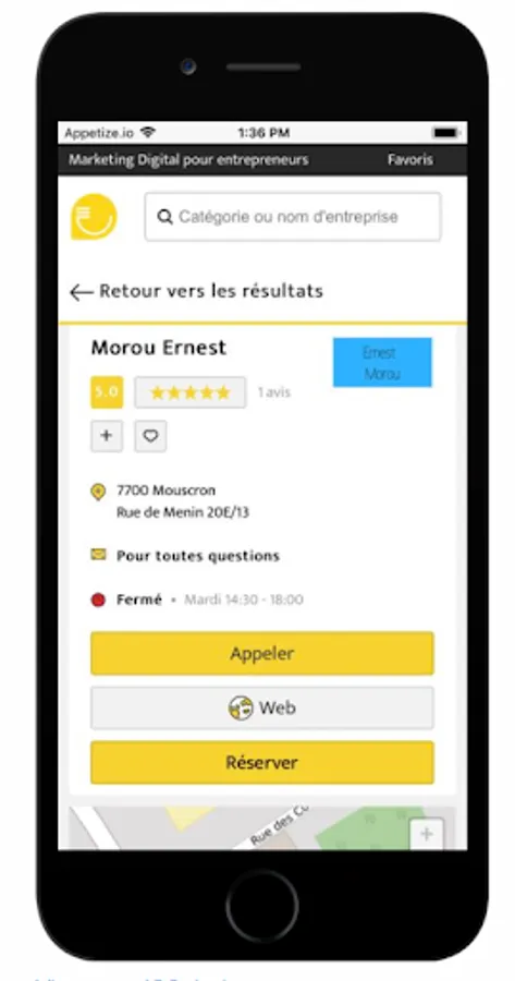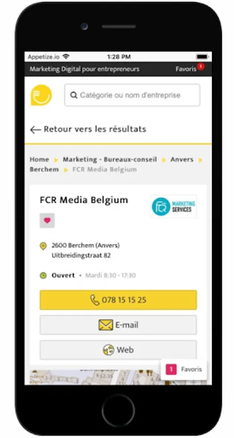 To compose a list of your favorite addresses, you have the option "favorites" and you can also publish a notice on a company after having been in contact, having bought their products or used their services.