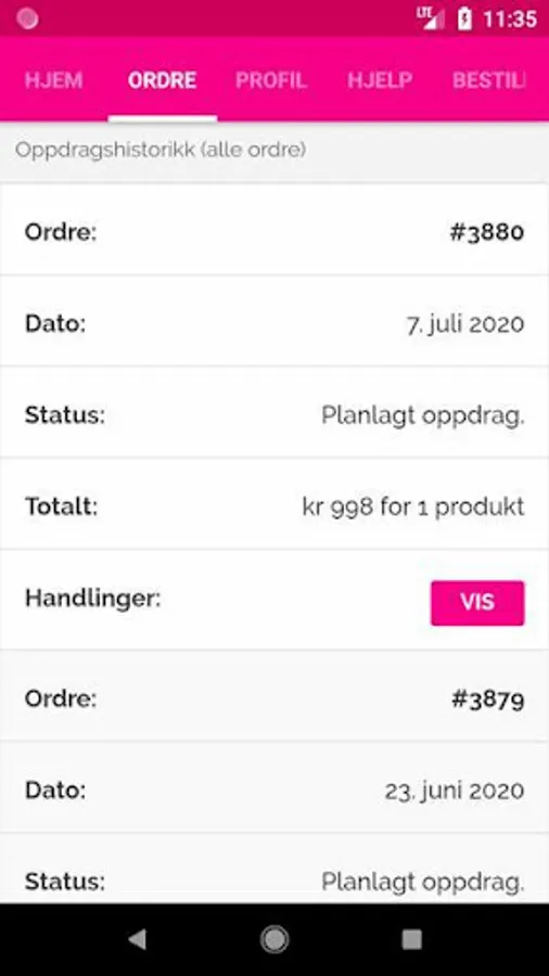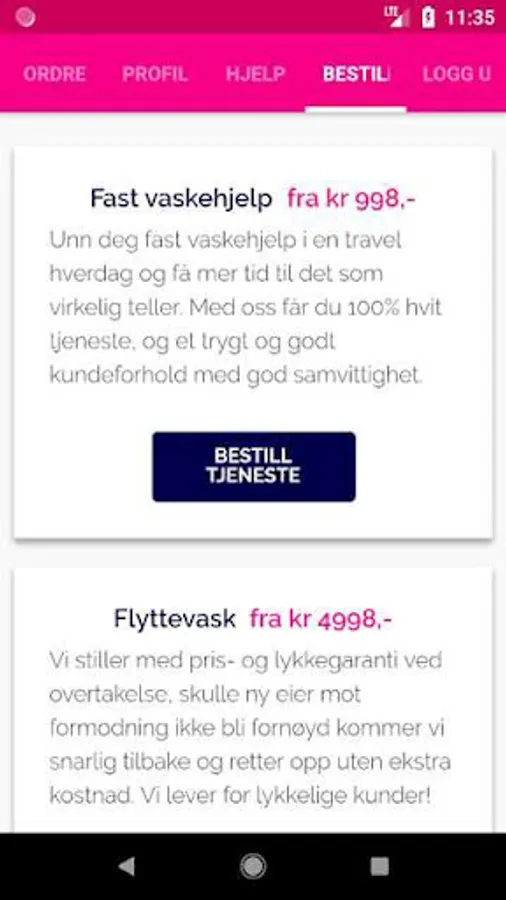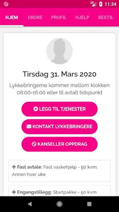 With the app Lykke Hjemme you can follow your orders and assignments. If you have a regular laundry service with us, you can always see when our next visit with you is.