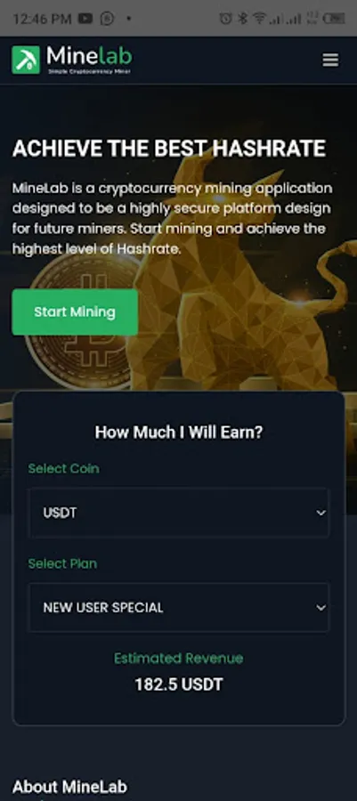 MineLab is one of the leading cryptocurrency mining platforms, offering cryptocurrency mining capacities in every range - for newcomers. Our mission is to make acquiring cryptocurrencies easy and fast for everyone. We are not mining crypto through the device. Mining process is happening remotely in our servers and the users can monitor the progress through this application.
