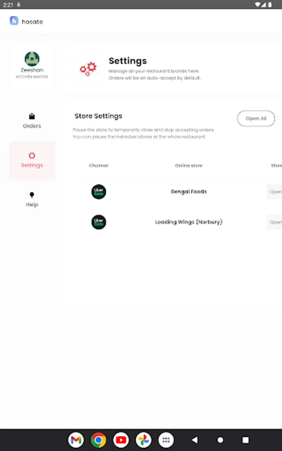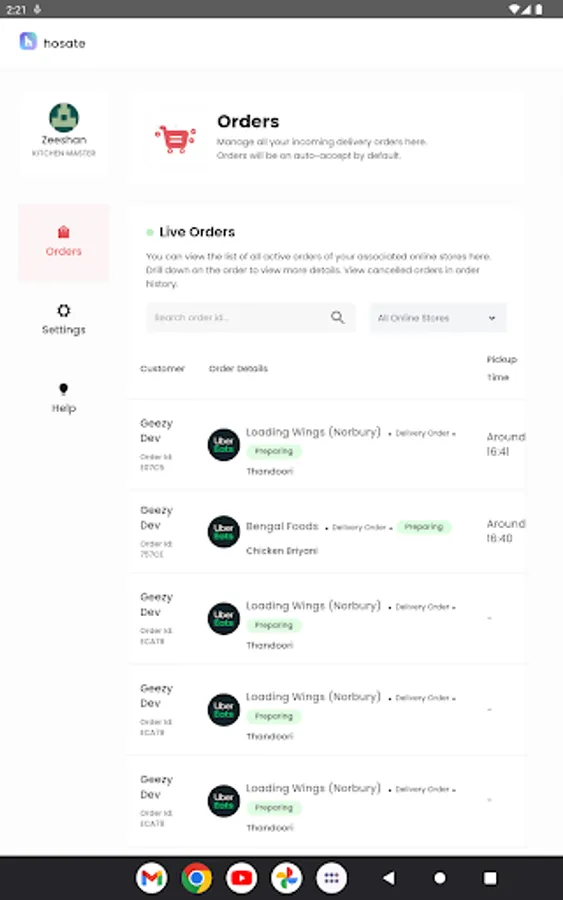 Application for managing various food delivery aggregators like UberEats and Deliveroo.
