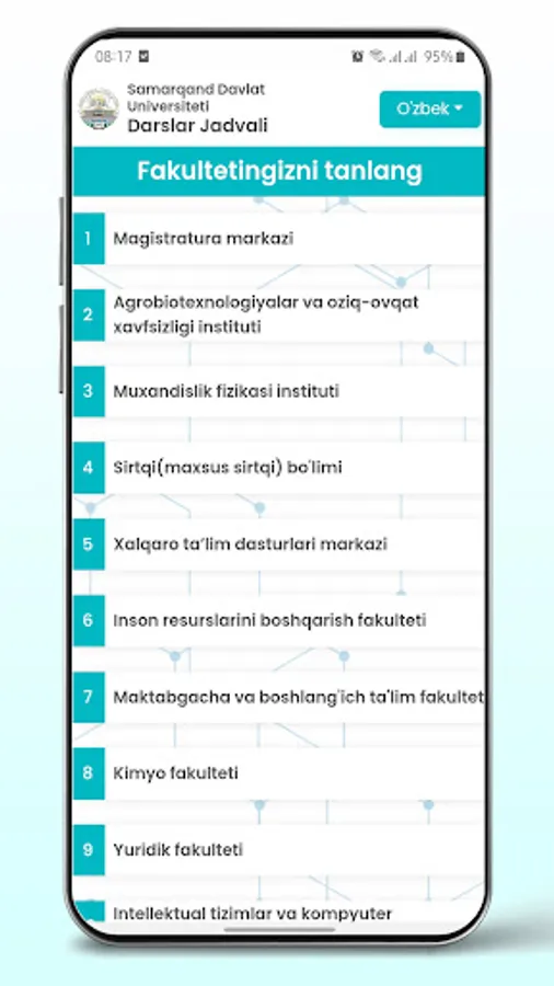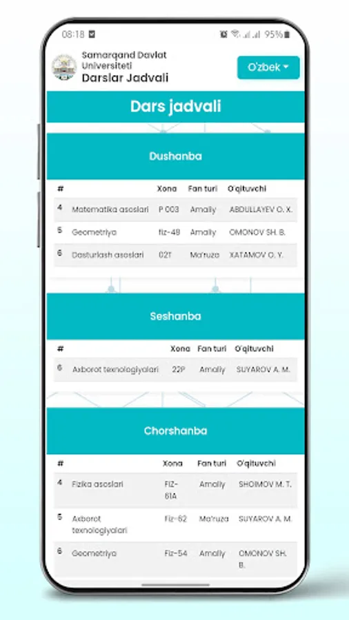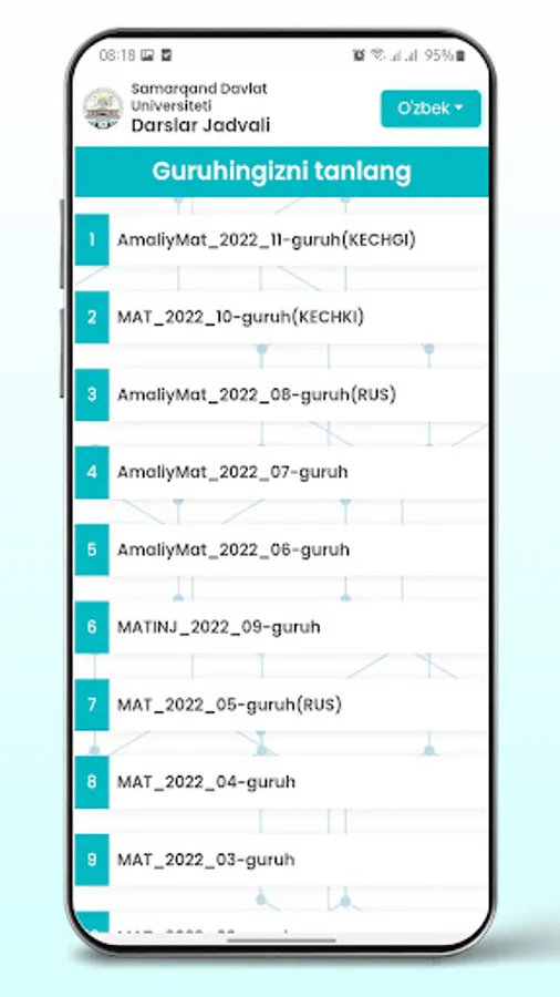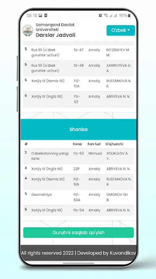 Sharof Rashidov nomidagi Samarqand davlat universiteti talabalari va o'qituvchilari uchun online dars jadvali mobil ilovasi