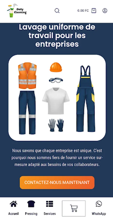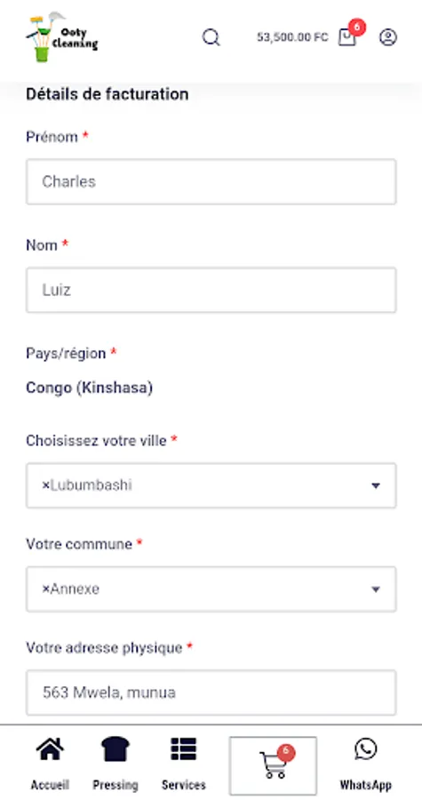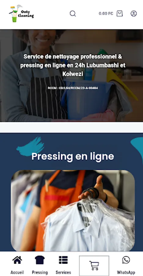 Ooty Cleaning is an online ecological laundry and high quality professional cleaning application from the company Ooty Cleaning, operational in Lubumbashi and Kolwezi for dry cleaning, in Lubumbashi, Likasi, Kolwezi, Kasumbalesa and Kipushi for professional cleaning. A control of the quality of cleaning ensured through our