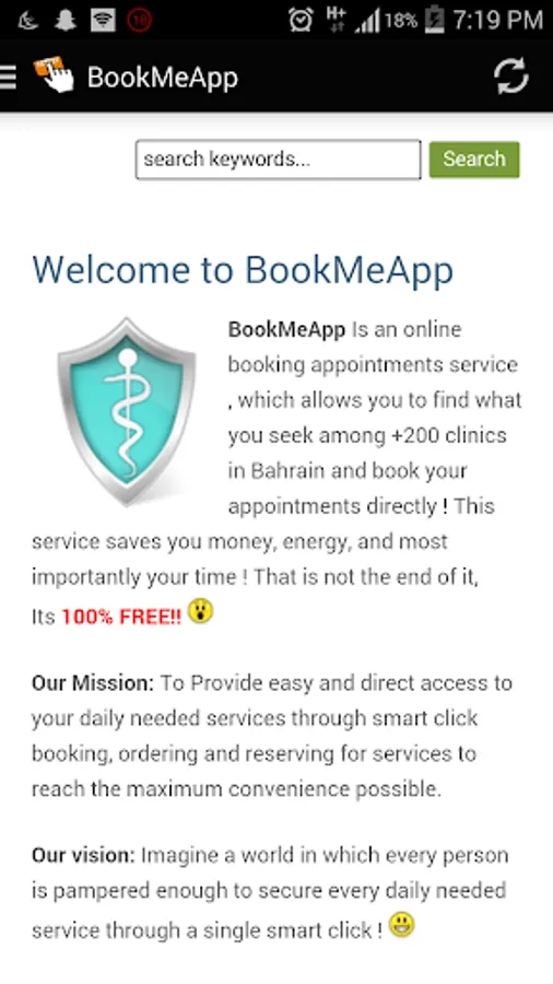 BookMeApp Is an online booking appointments service , which allows you to find what you seek among +200 clinics in Bahrain and book your appointments directly ! This service saves you money, energy, and most importantly your time ! That is not the end of it, Its 100% FREE!!