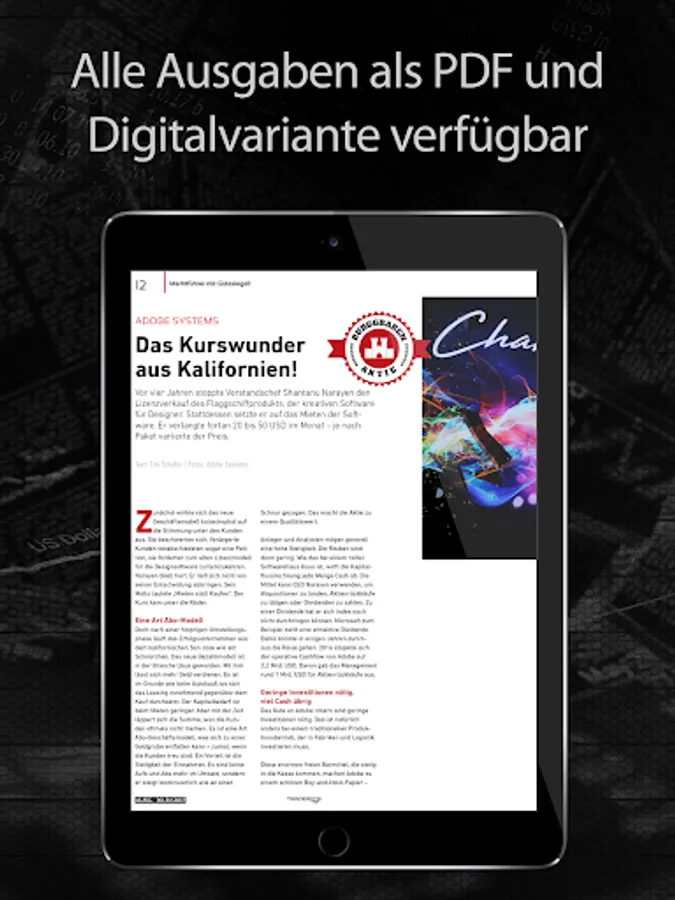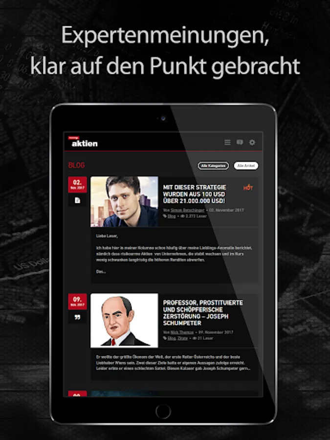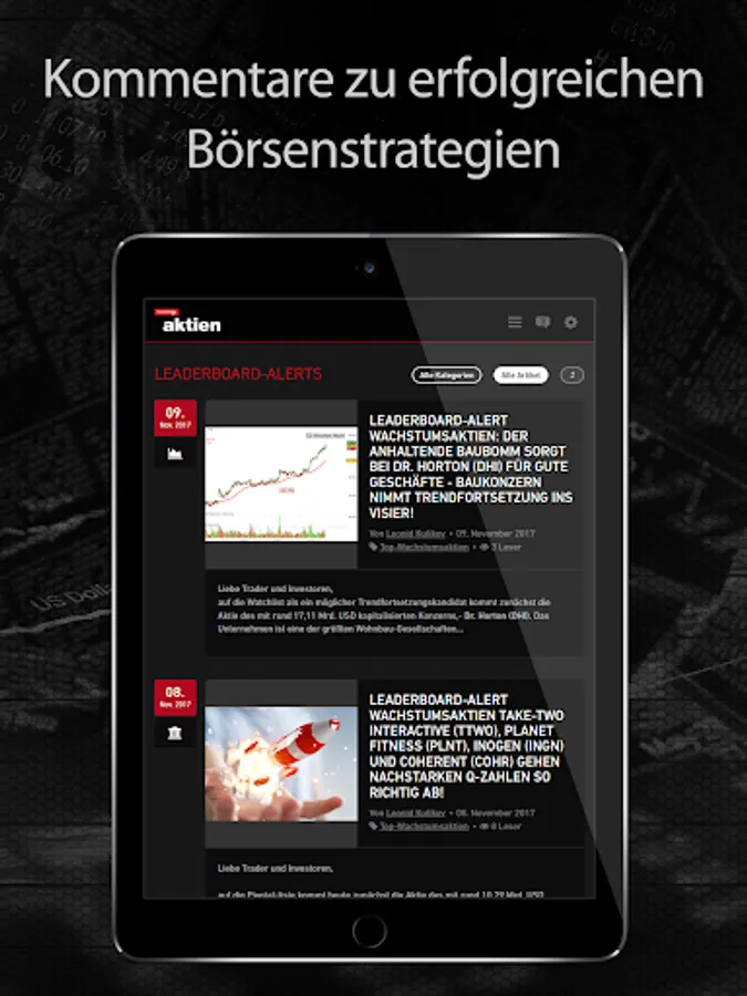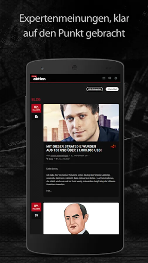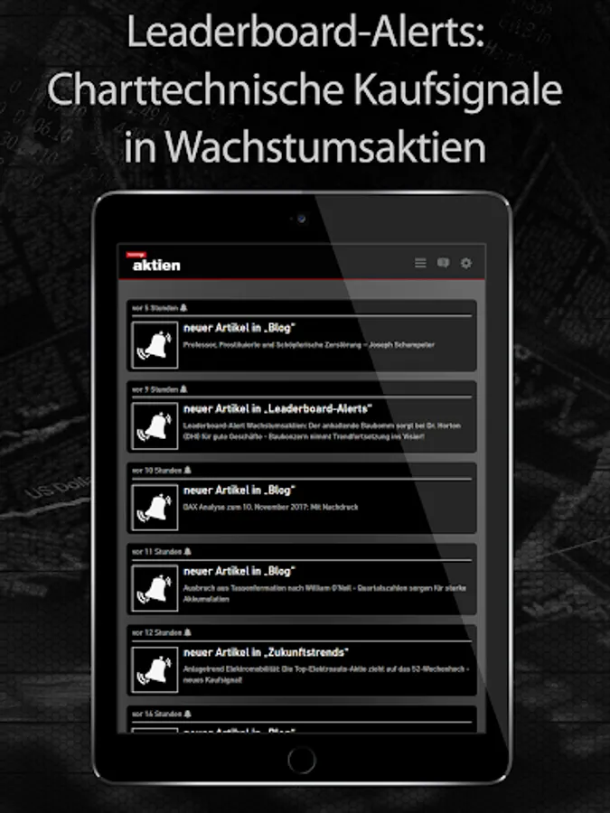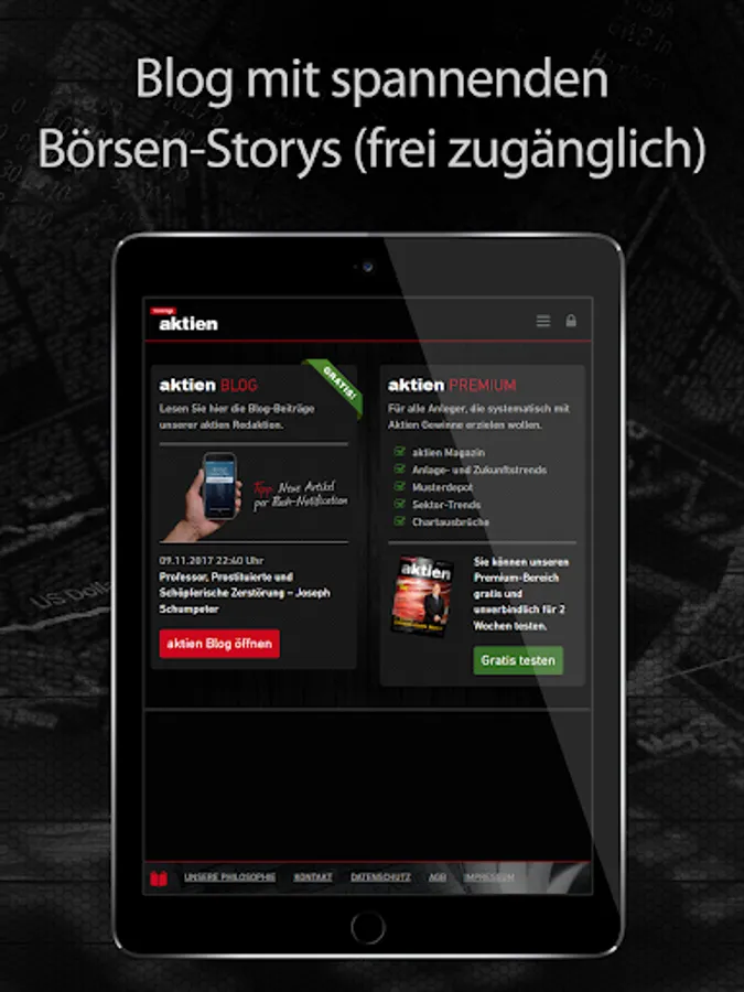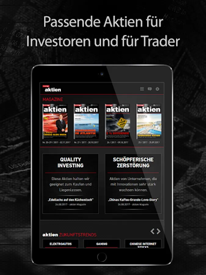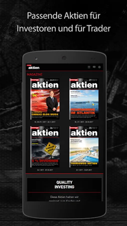 shares is the name of our magazine. We write about how you, dear readers, money systematically earn stocks. Our focus is on the rule-based and software-based search for promising stocks. The contents of this app are: