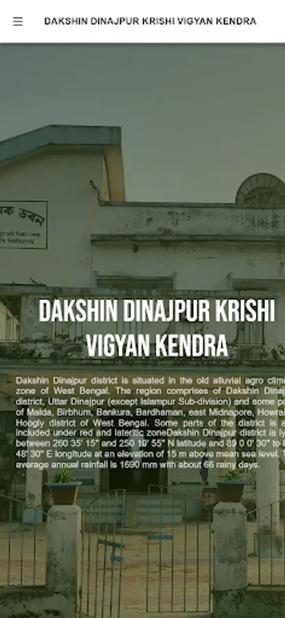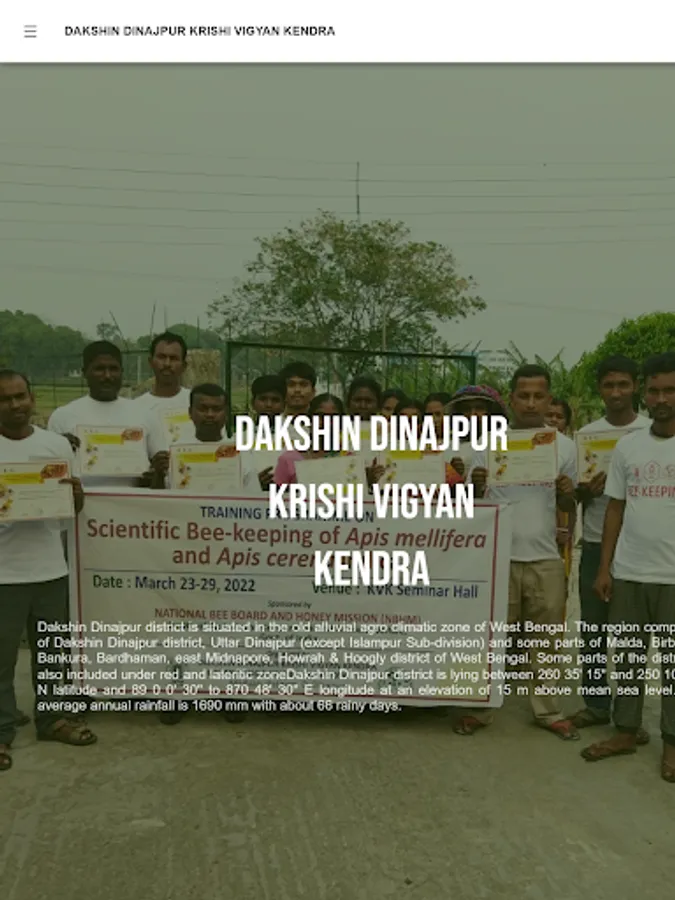 Dakshin Dinajpur district is situated in the old alluvial agro climatic zone of West Bengal. The region comprises of Dakshin Dinajpur district, Uttar Dinajpur (except Islampur Sub-division) and some parts of Malda, Birbhum, Bankura, Bardhaman, east Midnapore, Howrah & Hoogly district of West Bengal. Some parts of the district is also included under red and lateritic zoneDakshin Dinajpur district is lying between 260 35' 15'' and 250 10' 55'' N latitude and 89 0 0' 30'' to 870 48' 30'' E longitude at an elevation of 15 m above mean sea level. The average annual rainfall is 1690 mm with about 66 rainy days.
