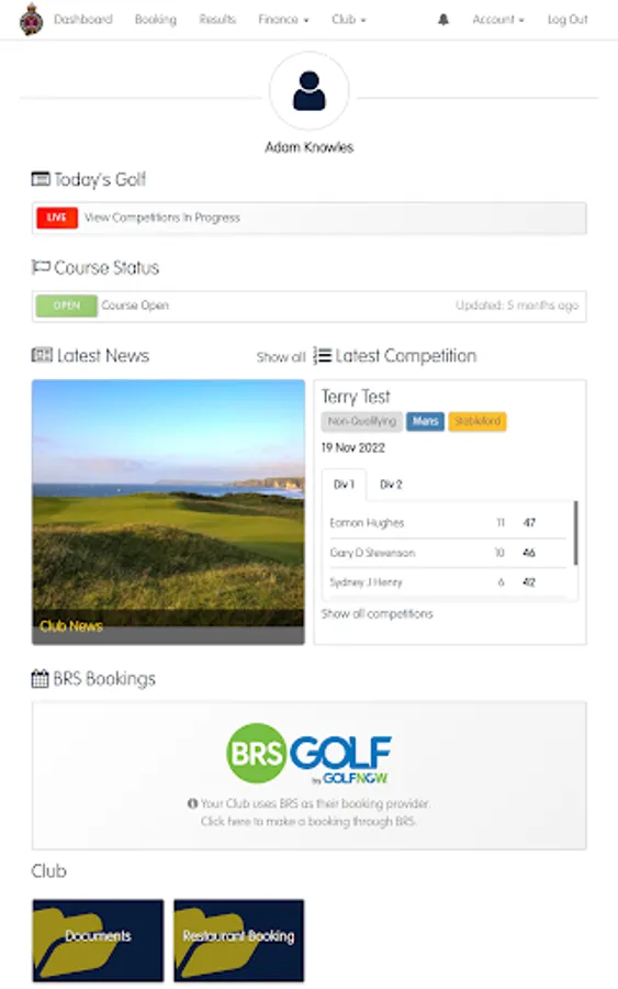 View your golfing stats and handicap certificate**,