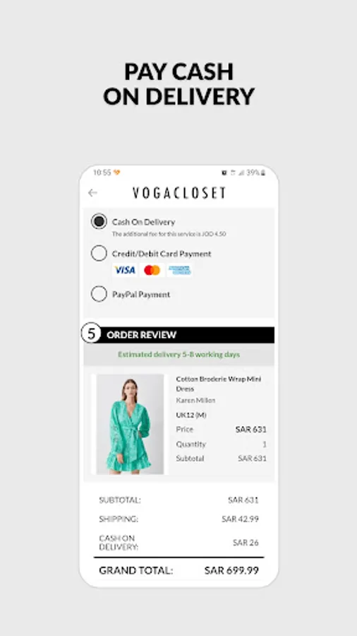 - Choosing your preferred payment options: cash on delivery, credit card, or PayPal.