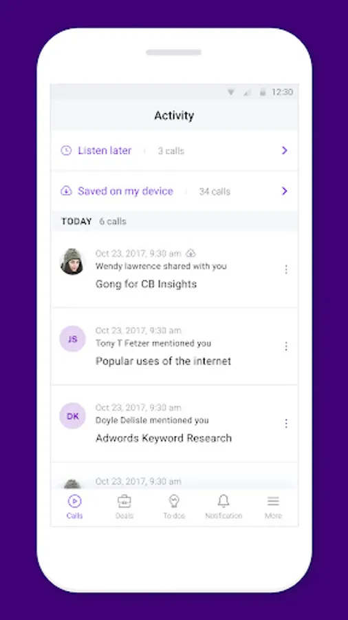 - Offline access: Access, listen, comment on calls, even when you're offline.