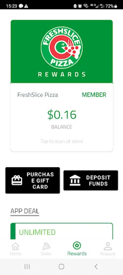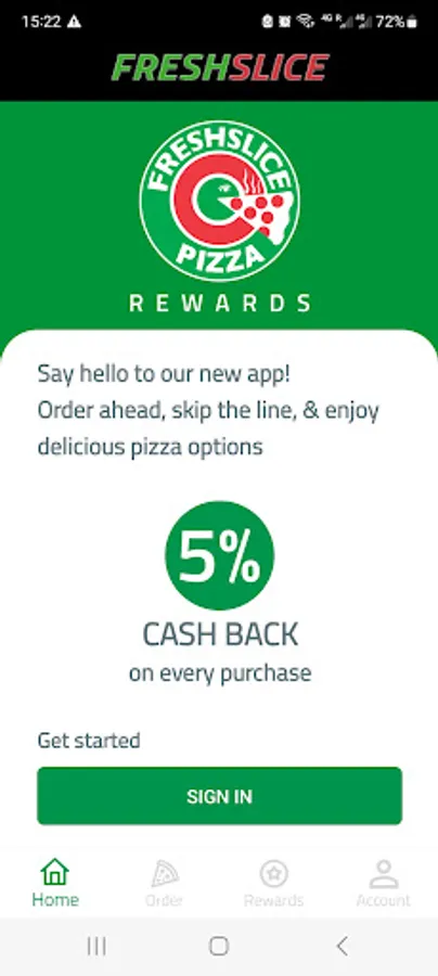 Order FRESHSLICE pizza and collect FRESH REWARDS. Get 5% cash back for every purchase into your FRESH REWARDS account and redeem anytime for discounts on future purchases.