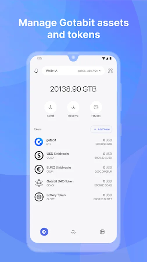GotaBit Wallet is the official mobile wallet for managing native GotaBit assets and tokens, connected to a decentralized application running on the GotaBit blockchain.