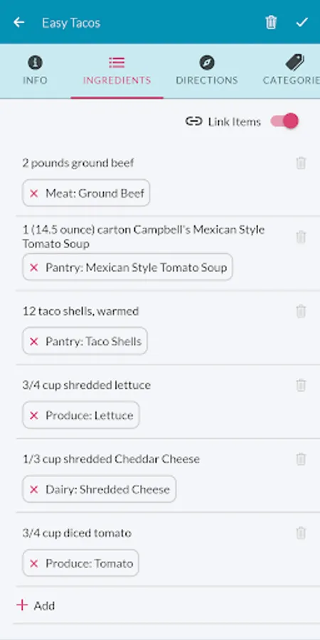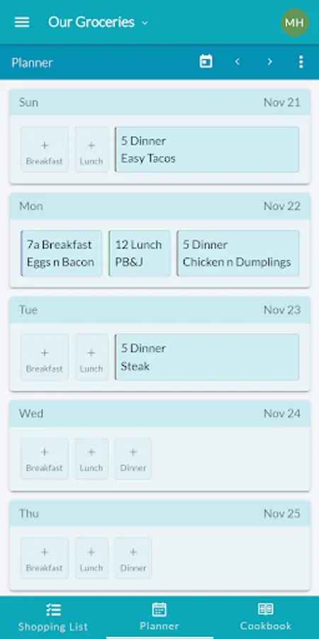 • Link a recipe to the meal to then be able to quickly add items that you need to your shopping list.