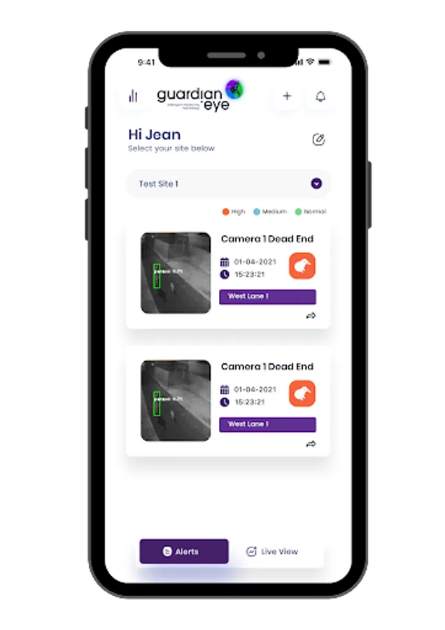 Turn any camera into a virtual security guard with Guardian Eye. Our cutting-edge video analytics transforms any camera stream into a feed of intelligent alerts for total risk visibility and fast, proactive response. Available via GuardianEye Cloud™ or GuardianEye Keeper™, our AI identifies the threats you care about in 0.2 seconds and sends these verified alerts to you and a network of our trusted security partners.