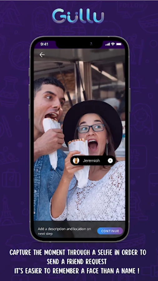 To add someone on Gullu, just take a selfie! Why a selfie? It's easier to remember a face than a name. Plus, isn't it more fun to capture memories with all the meaningful relationships you've formed? Instead of just adding another number to your contact list or connecting on social media platforms, that you might forget about in a few months.