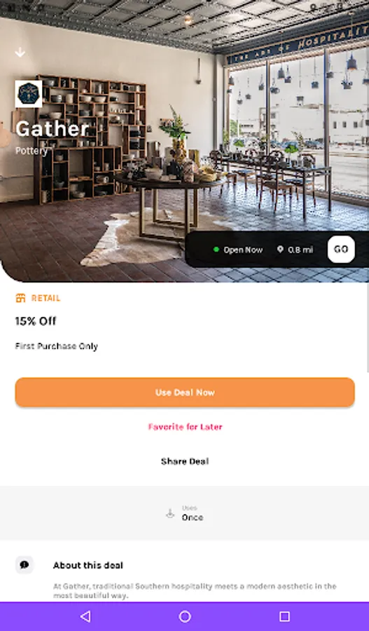 -Just too lazy to find deals? Using geo-location, the platform will send you push notifications letting you know when deals are near so you don’t even have to do any work!