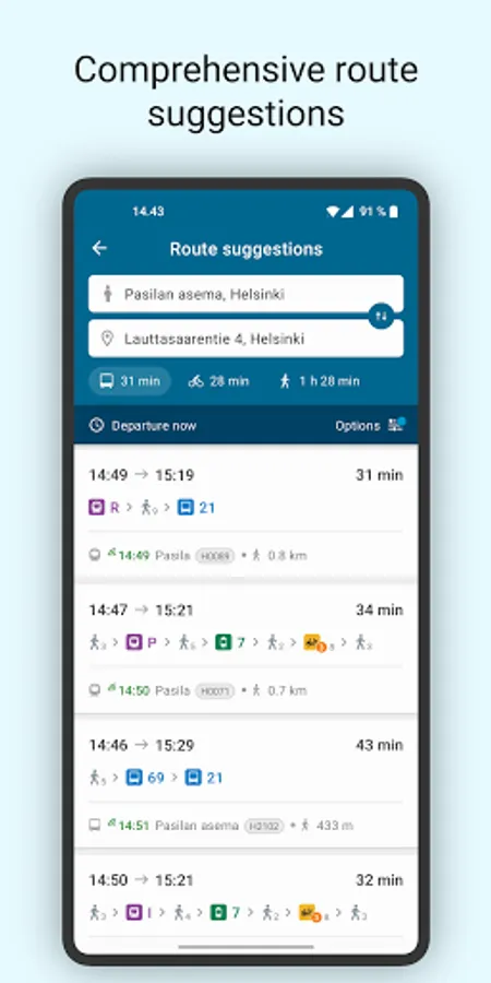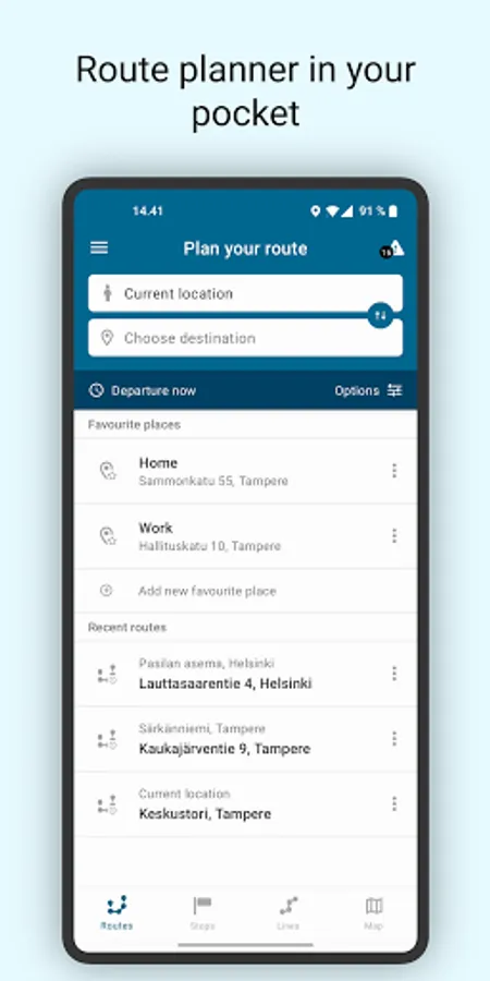 Nationwide journey planner with flexible options, guides you to anywhere in Finland.