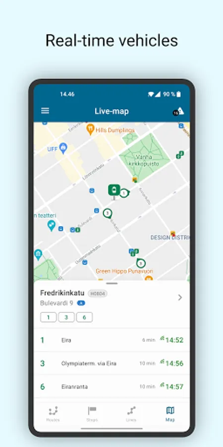 Live-map show you bus, tram, subway, train and ferry real time locations and routes.