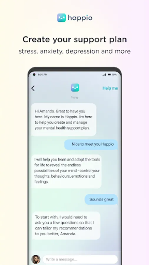Check-in with the Happio Chat Bot for that extra boost of guidance.