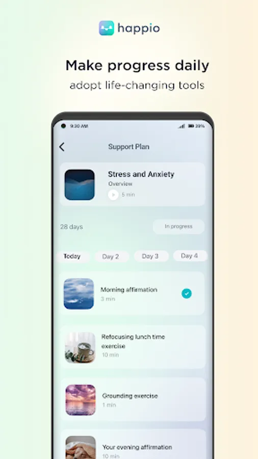 Discover and adopt behaviour-changing techniques and practices which work specifically for you. Then you’ll know how to best handle how you’re feeling beyond the Happio programme.