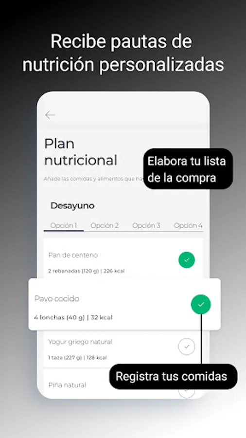 Here you will find your personalized nutritional plan with the organization of each of the meals that correspond to you, quantities and options to achieve your specific objective.