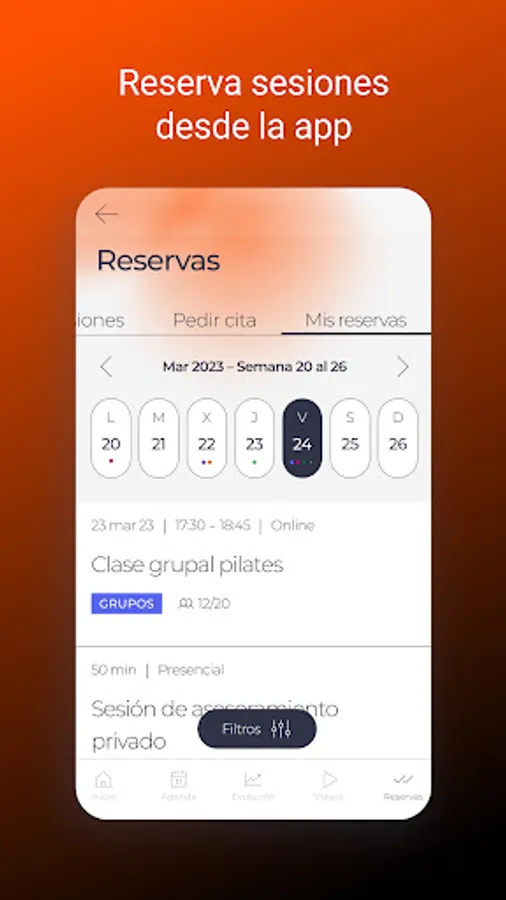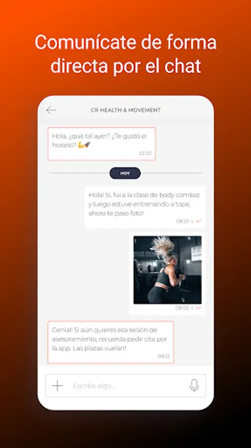 Book your personal training or any of our group trainings from the app, making sure you don't miss any of your sessions.