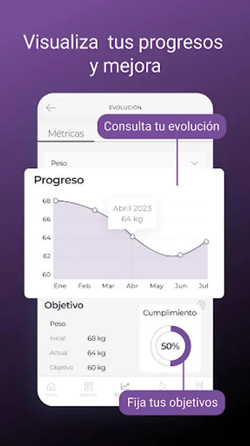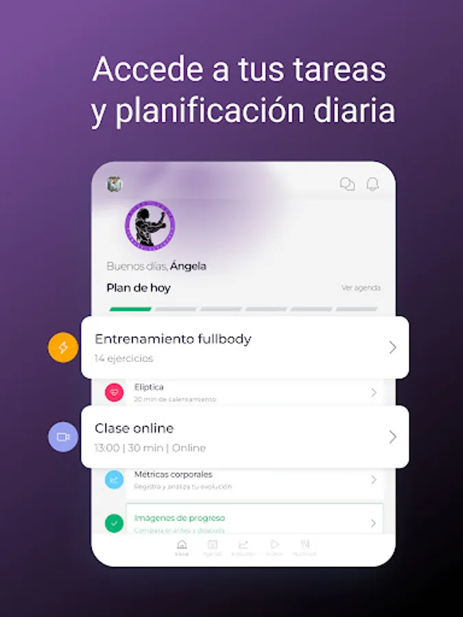 My Personalized App, where you will receive your daily training, your eating plan, and all the benefits of being in my team. Your entire plan is 100% personalized, in addition to a 1 to 1 contact with me VIP, therefore your results, evolution will be fast and efficient.