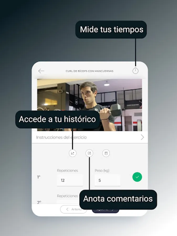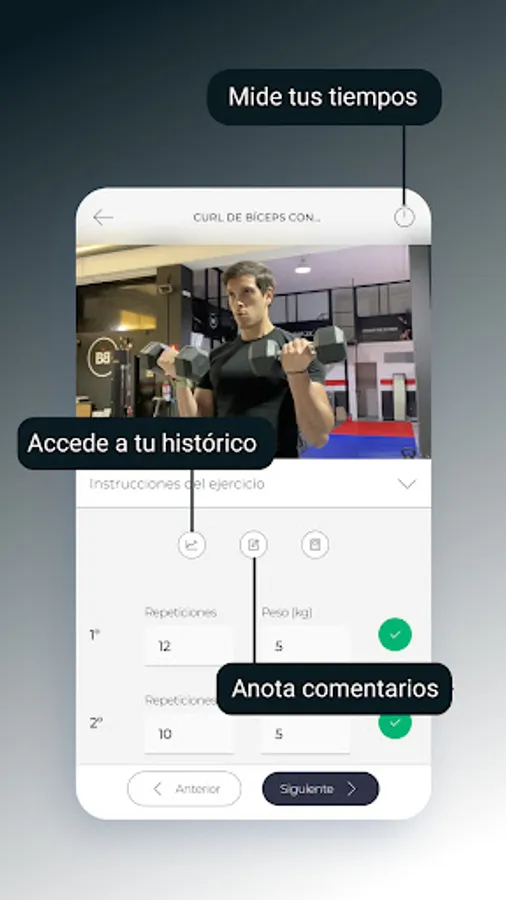 - Photos and explanatory videos of how to correctly execute the technique of the exercises