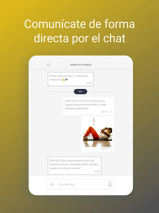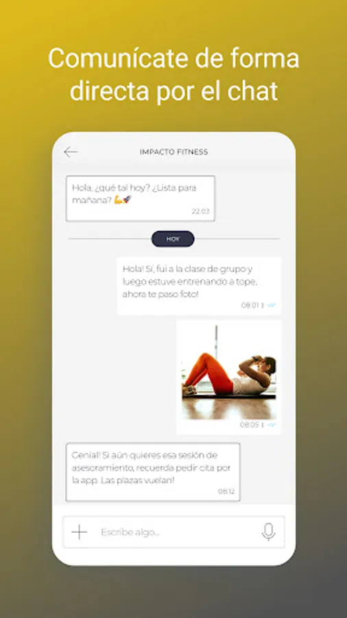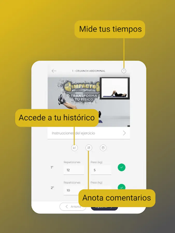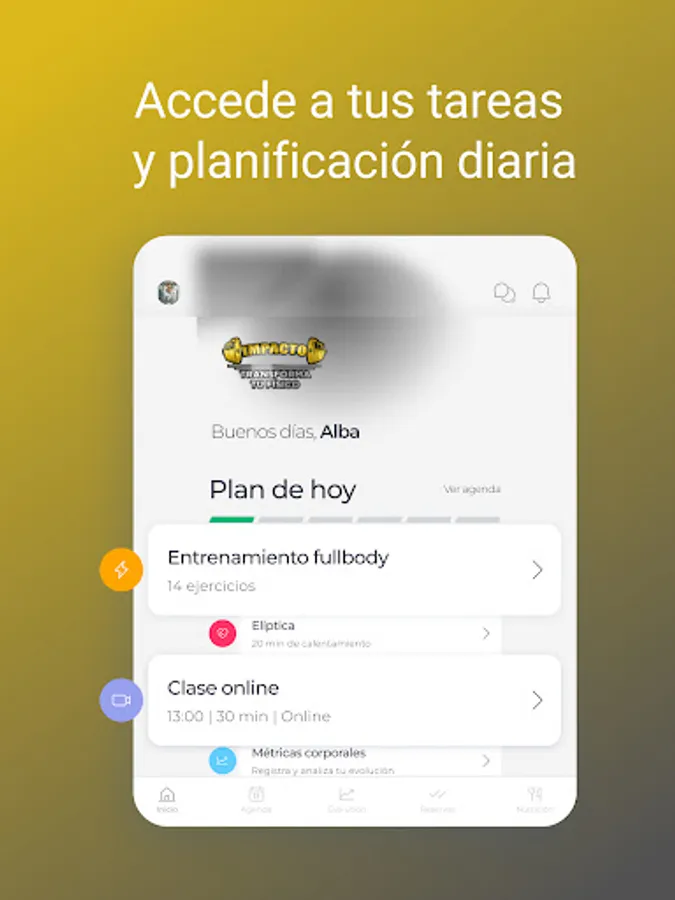 The IMPACTO FITNESS app is the key that opens the door to a healthy lifestyle with which you will feel better. You will have a complete training and nutrition tool in the palm of your hand, which you can adapt to your day to day. You no longer have an excuse... Shall we start?
