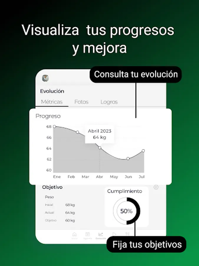 With this app we help you achieve your physical results so that you can evolve and grow quickly and efficiently