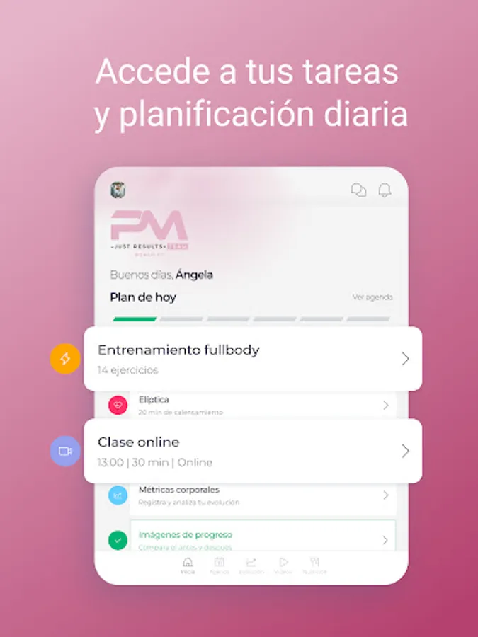 Your app to receive your nutrition planning and personalized training.