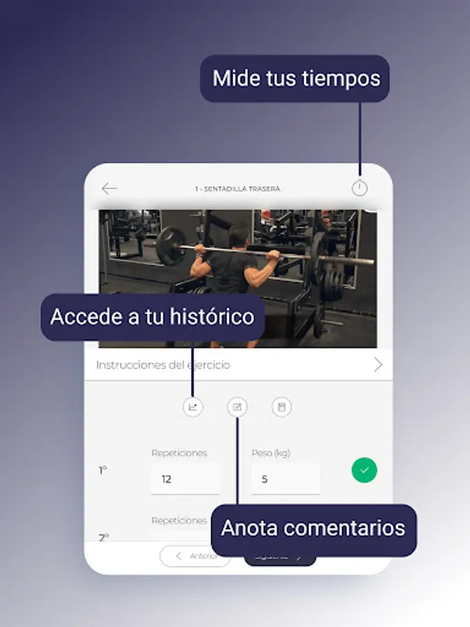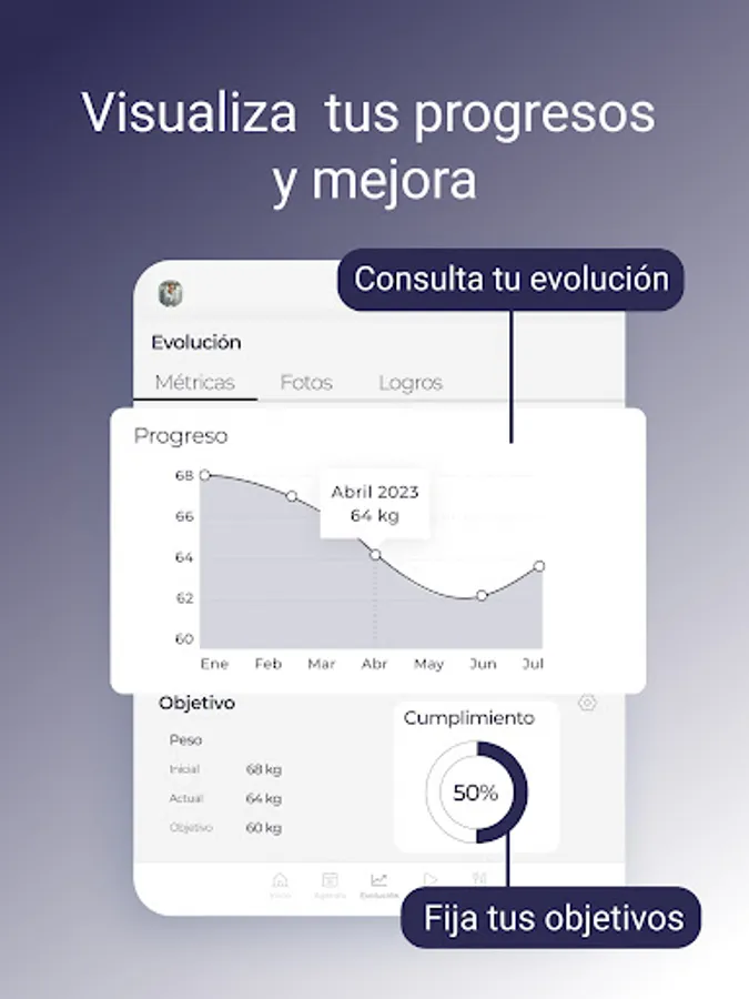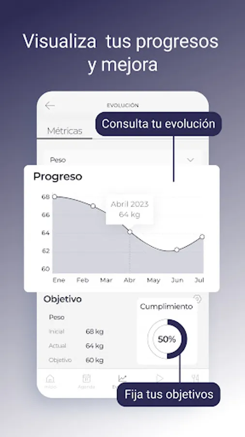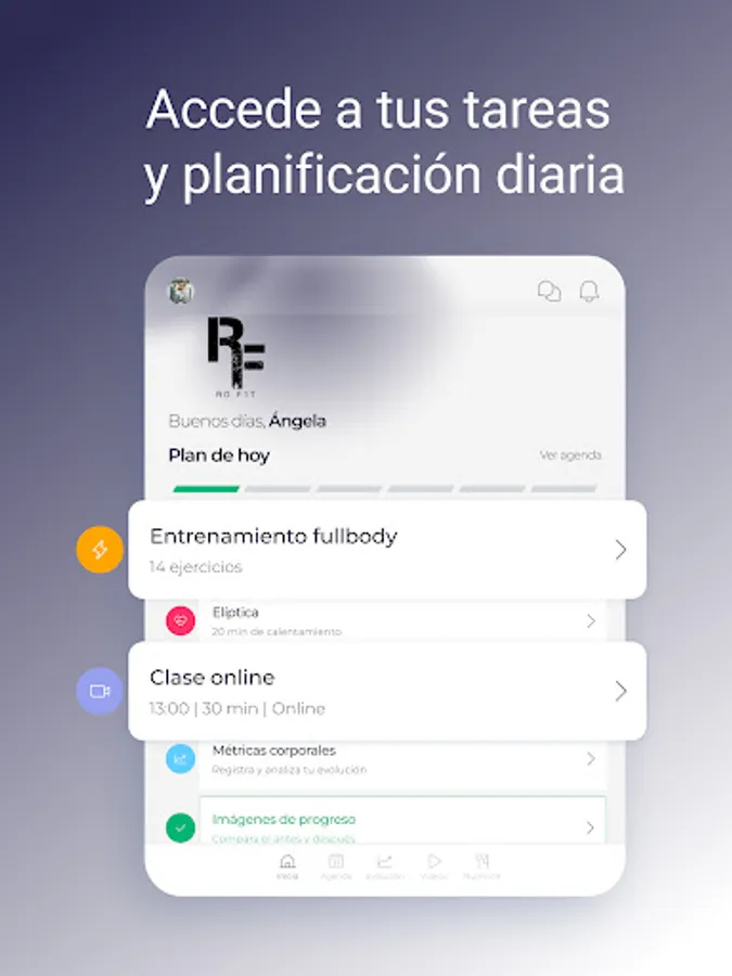 Receive your daily planning with your training routine and eating plan through an app. We are monitoring changes and results effectively and with a record to keep the evolutions.