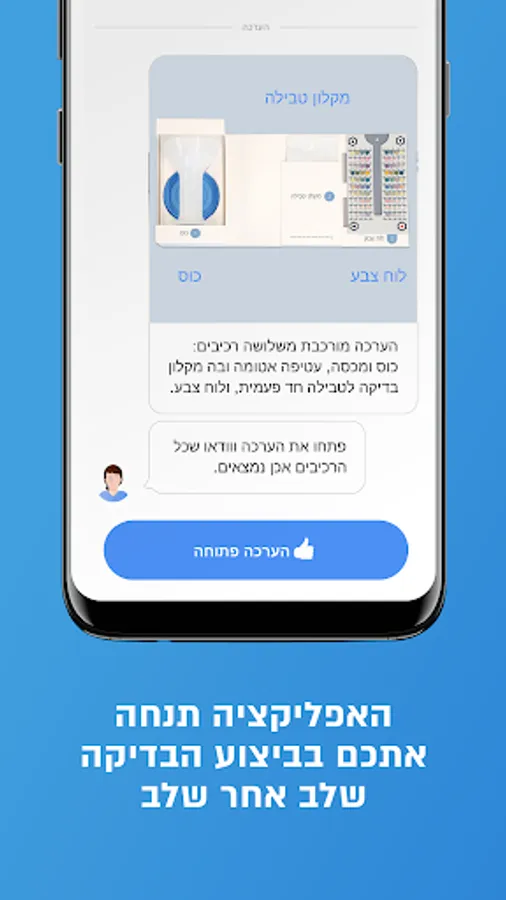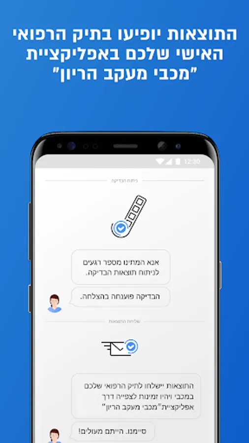 Start the test by logging in to the Pregnancy Macs app on the "Personal Area" menu on "Your Medical Case" and click on "Digital Urine Test". From there, you will be taken to the "Home Lab" app to guide you through the testing process step by step. At the end of the test, the results will be sent back to the personal area of the Maccabi Pregnancy Tracking app and to the attending physician.
