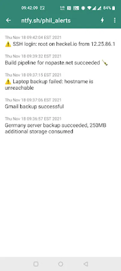 $ curl -d "Your backup is done" ntfy.sh/mytopic