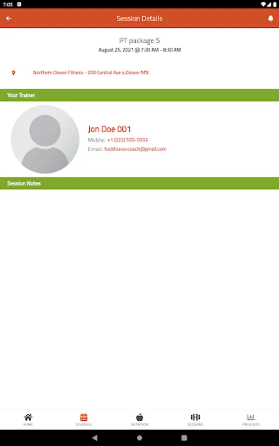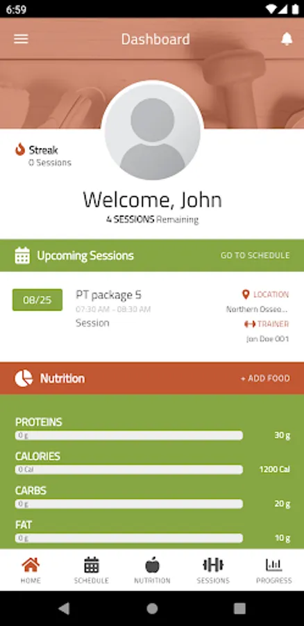 Build Brand Value, Credibility, and Client Engagement. Main Features: Schedule Management, Nutrition Tracking / Food Journal, Goals and Achievements, Push Notifications, Sessions Management.