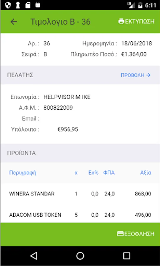 Portable invoicing program (invoicing, orders, receipts). Works with Data Communication's Winera program. Please contact our sales department at 2221043549 or info@helpvisor.gr to obtain a license.